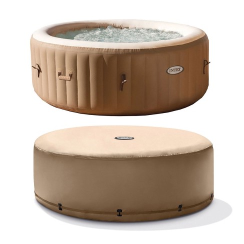 Intex Purespa 4 Person Tan Inflatable Bubble Jet Spa Portable Hot Tub With Cover